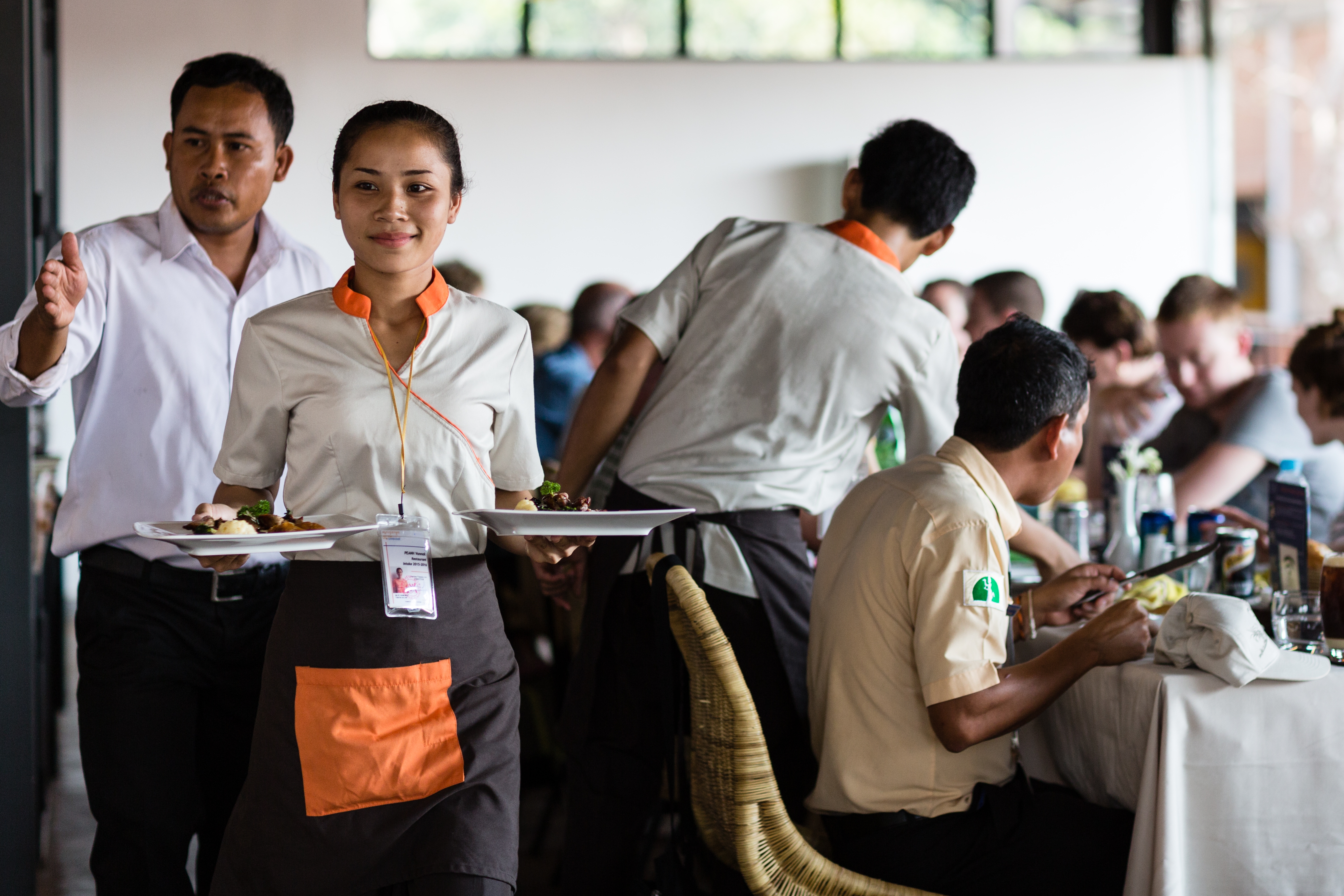Trong số đó có Bunchhoeur, học sinh SPOONS, Campuchia Lớp 2022. Nhờ sự hỗ trợ của học bổng và sự hướng dẫn của nhà trường, trong quá trình học, em không chỉ học được cách phục vụ nhà hàng mà còn học được nhiều kỹ năng sống và tiếng Anh. Anh từ một học sinh nhút nhát trở thành một học sinh đầy tự tin, luôn sẵn sàng giúp đỡ các bạn học và chăm sóc khu vườn của SPOONS. Chúng tôi rất vui vì anh ấy đã có thể xin được việc làm tại Công ty Dịch vụ ăn uống Campuchia ở Siem Reap.